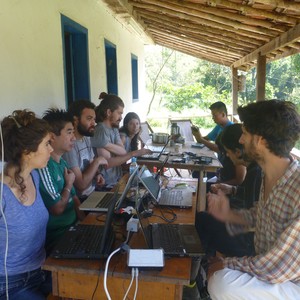 Un poco antes en 2014, también Al & Griselda (de guifi.net) habian estado visitando a Rhizomatica en Oaxaca. Meses más tarde, junto con Bruno (de Nuvem) se propusieron replicar la experiencia de forma independiente (un hito siempre deseado en los proyectos descentralizados) en Brasil, y nos convocaron para dar una mano. Así, en julio de 2015 materializamos en conjunto la primera red comunitaria de Internet (estilo AlterMundi) con red GSM autogestionada (à la Rhizomatica) en el pueblo de Fumaça, Rio de Janeiro.